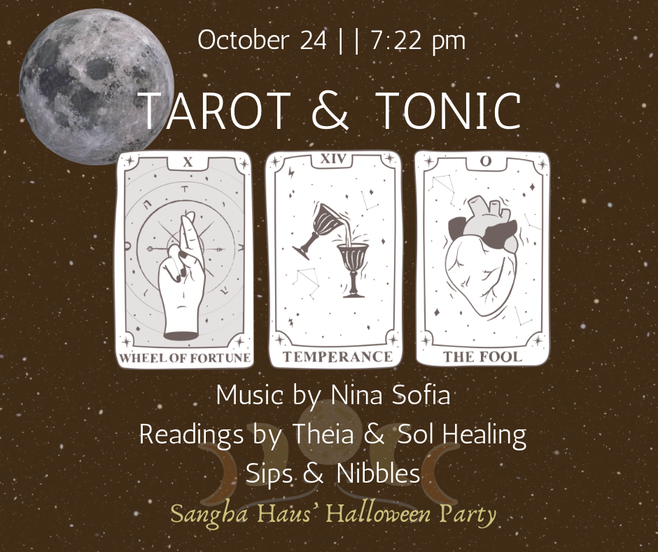 Sangha Haus’ Halloween Party! An intimate set by Nina Sofia, nibbles and sips! This is a FREE event for our community to kick back and have fun!